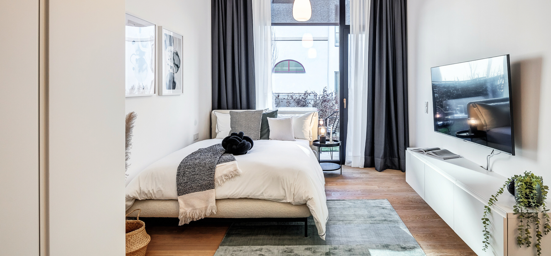 Ein frisch renoviertes 1-Zimmer-Apartment wurde für die befristete Vermietung komplett möbliert und bezugsfertig ausgestattet – modern, einladend und klar strukturiert. Die Möblierung verbindet Funktionalität mit wohnlichem Komfort und nutzt den kompakten Grundriss optimal aus.